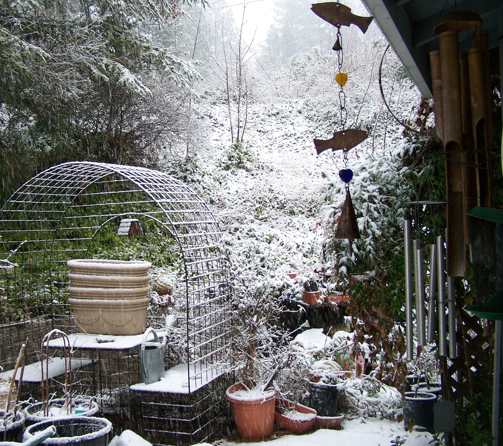 Today the third of a series of big El Nino storms is whirling over Northern California. It dropped a lot of rain and, a little while ago, the snow pictured above.