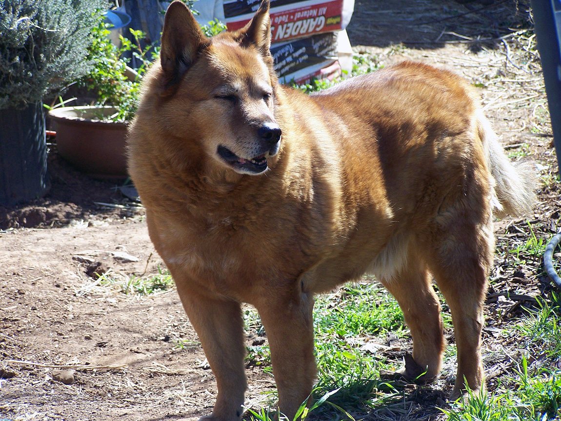 Logan was 91 year old in dog-years. He had a good, long life for a dog; a much longer life, I believe, than he would have had if he’d had people other than us choose him from the litter that day. Of the five puppies born to a Queensland healer dam and a Border collie sire, he was the only red one; all the others were black. He was beautiful then, and as he grew, he became even more beautiful, with gorgeous rufous fur so soft and thick and warm I could lose my fingers to the second knuckle in it. He was, even as a puppy, never the cuddly type of dog. He was afflicted with “fear aggression,” something we discovered when we took him to puppy kindergarten when he was six months old. It was intractable, though we tried hard to socialize him. Some people might have had him “put down” way back then, but we couldn’t do that. He was a member of our family. We’d adopted him for life. And with us, his personality was so loveable, so true and loyal, and he tried so very hard to be the Good Dog we wanted him to be, that “cuddly” and “socialized” didn’t matter.
